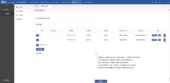 会议通知后台页面展示