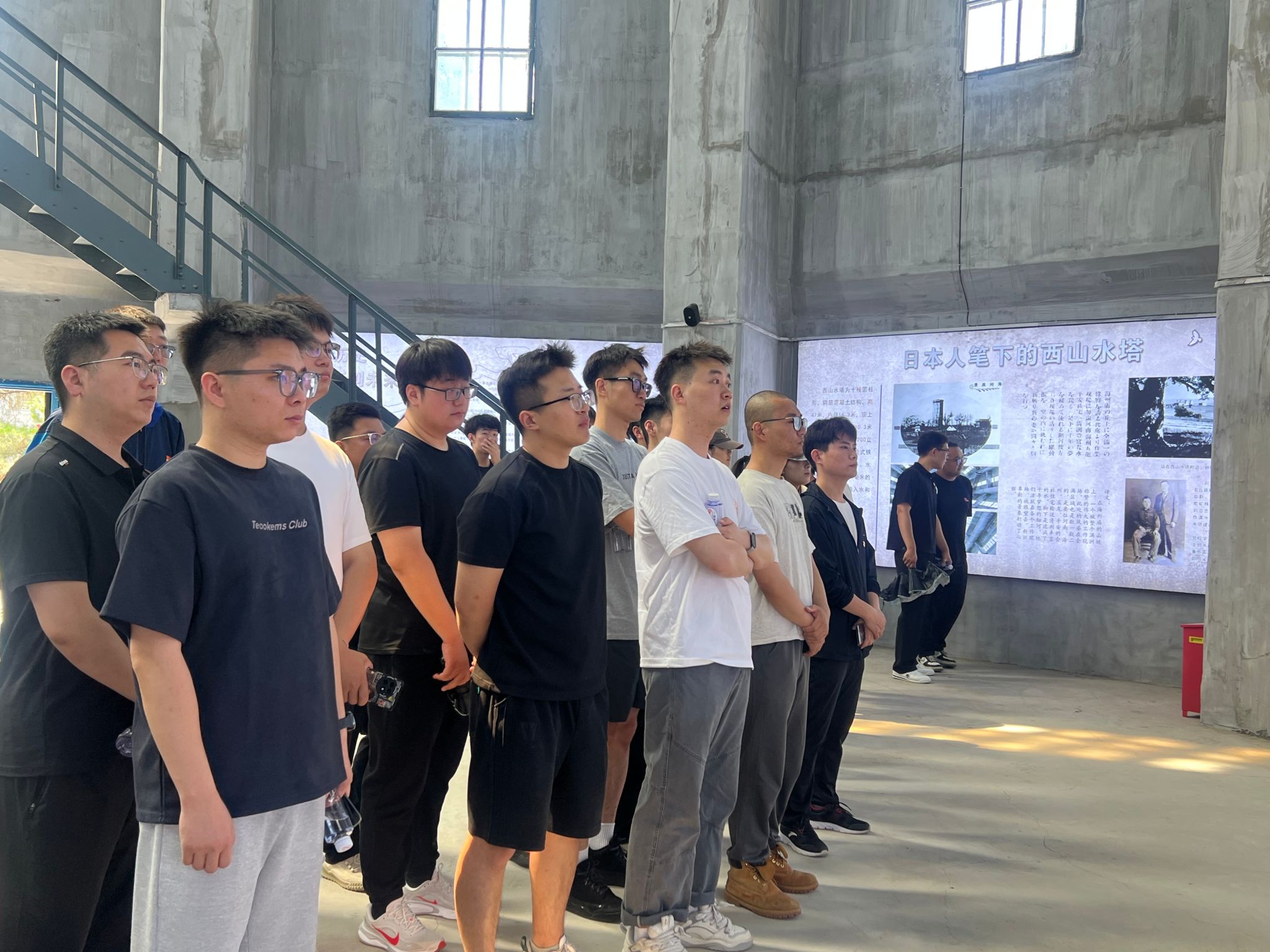 全体党员乘坐大巴首先抵达西山水塔公园,参观阜新重要工业遗迹——西山水塔。这座始建于1936年的水塔,是日本侵华为掠夺阜新煤炭资源而建,见证了那段山河破碎、生灵涂炭的屈辱岁月。1948年阜新解放后,在党的领导下,城市供水事业不断发展壮大,西山水塔也由侵略的“铁证”转变为铭记历史、警示后人的爱国主义教育基地、国防教育示范基地。它深刻昭示:只有在中国共产党的领导下,中国人民才能真正掌握自己的命运,创造幸福生活。党员们驻足凝视,从沧桑巨变中感悟党的伟大,为后续的党性教育奠定了坚实的情感基础。