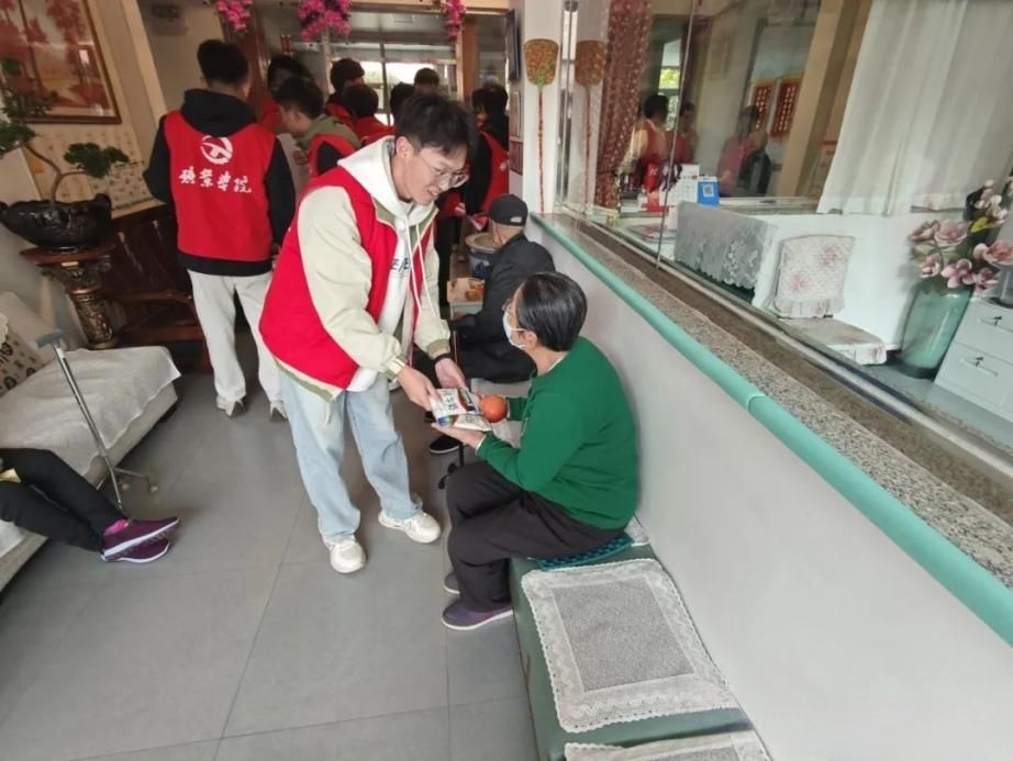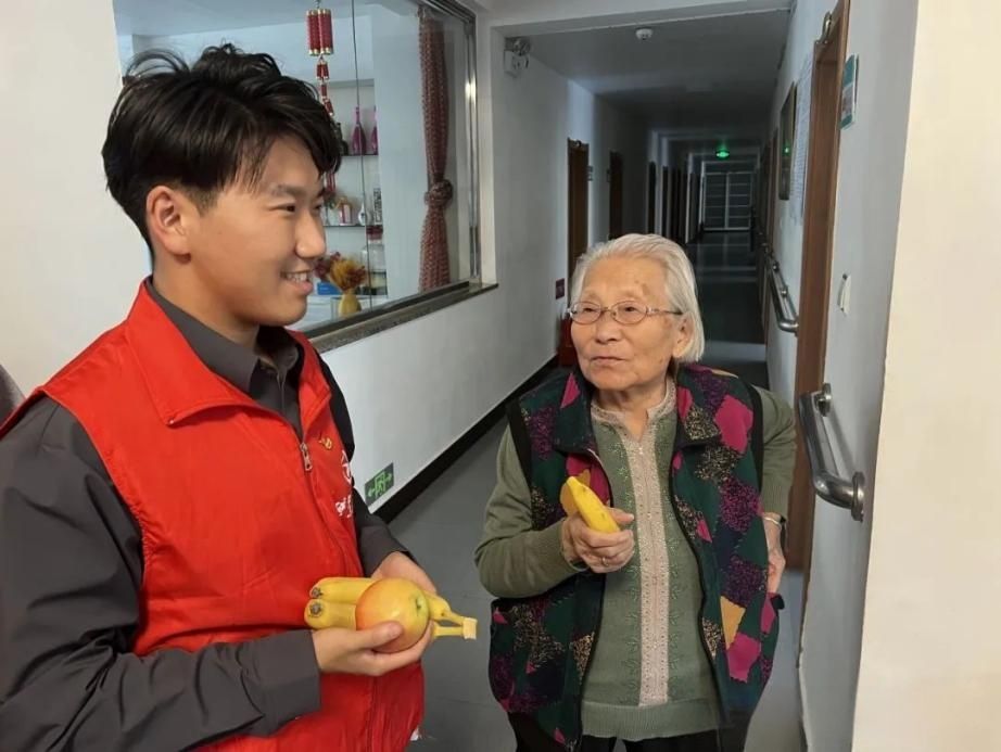 当日下午,志愿者们带着满腔的热情抵达养老院,帮助打扫卫生并分发水果、牛奶等慰问品。志愿者们与老人们亲切交流,询问其身体状况和生活情况,暖心叮嘱老人们注意身体。