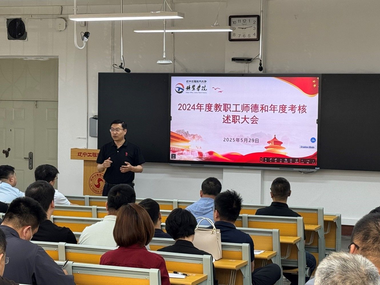 召开2024年度教职工师德和年度考核述职大会。会议由党委书记于海军主持,极速飞艇