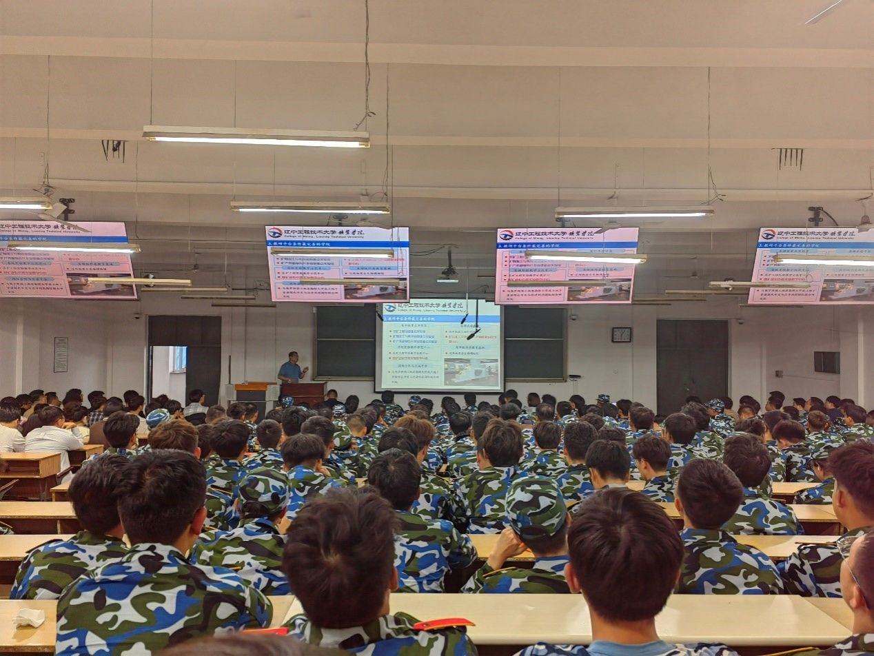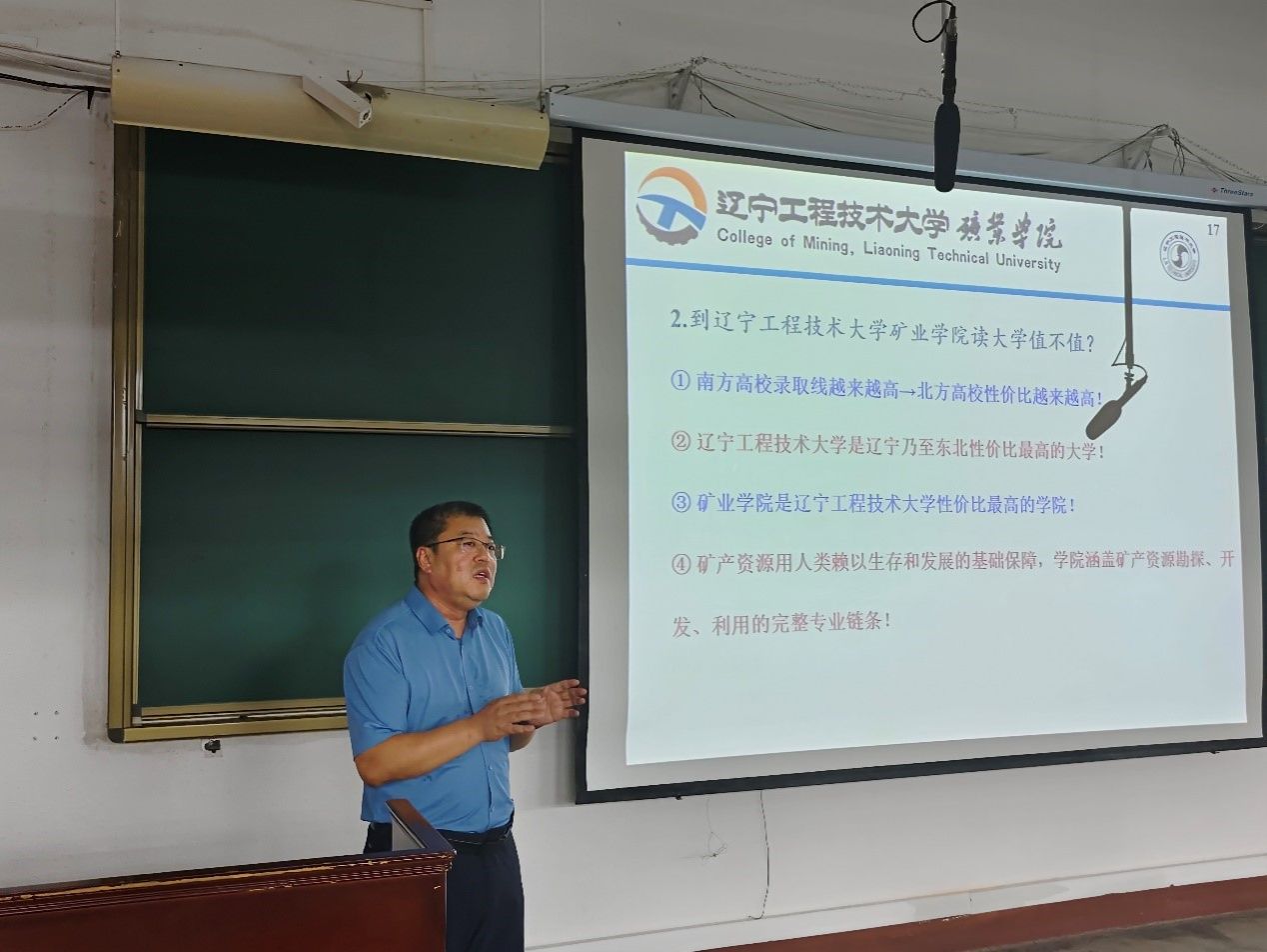 的悠久历史和深厚底蕴。同时,结合自身经历及校友发展介绍了绿色、智能、安全、高效的矿业行业发展现状,使同学们对所学专业有了更清晰的认识。他鼓励同学们在大学期间要树立正确的价值观念,增强社会责任感和使命感,掌握正确的学习方法,提前规划大学生活,学会自我管理,注重德智体美劳全面发展,努力成为堪当民族大任的新时代地矿精英。