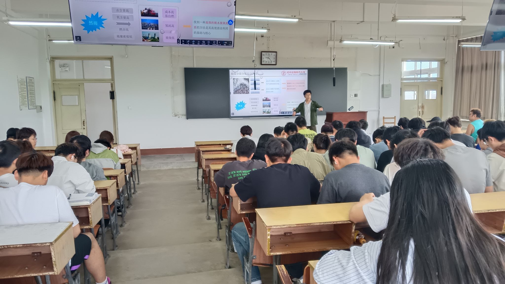 讲座伊始,柳树成教授简要介绍了洁净能源技术的定义、特点以及在全球能源结构中的地位。随后,柳树成教授深入剖析了洁净能源技术瓶颈产生的原因,并详细阐述了科研活动在突破这些瓶颈中的重要作用。最后,柳树成教授鼓励矿业学子积极参与洁净能源技术的科研活动,共同为推动这一领域的发展贡献自己的力量。他表示,只有通过科研创新和技术突破,才能不断推动洁净能源技术的进步,为人类社会的可持续发展贡献力量。