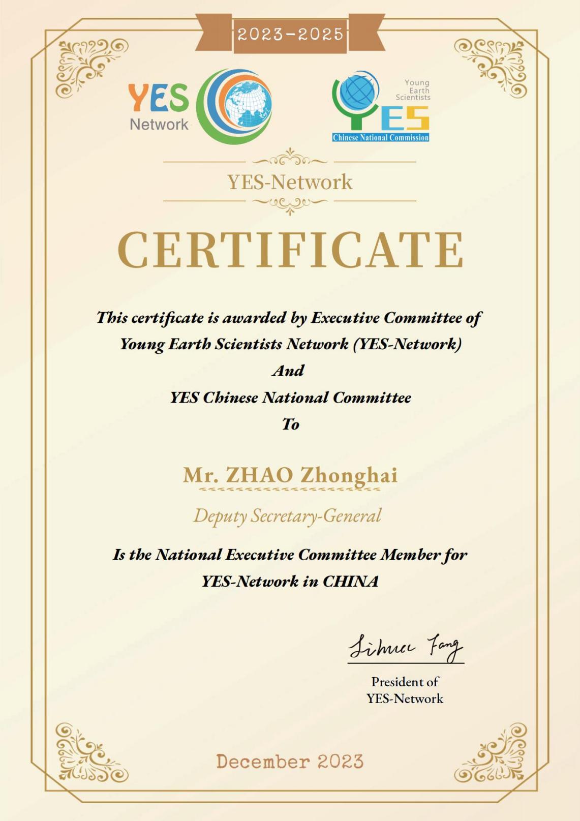 赵忠海副教授当选为YESChina第五届副秘书长。