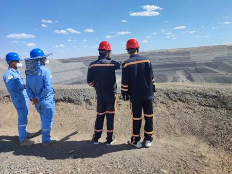团队成员在将军戈壁二号露天煤矿现场观察