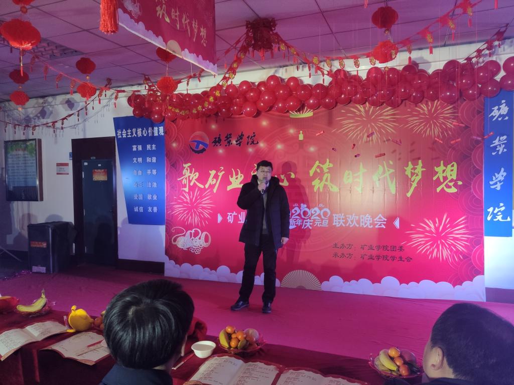 晚会开始,韩军院长首先致辞,韩院长对全院师生在2019年所做的工作与努力给予了充分肯定,向大家致以美好的新年祝福,激励同学们在追寻矿业初心的征途中努力拼搏,实现每一位学子的新时代梦想。