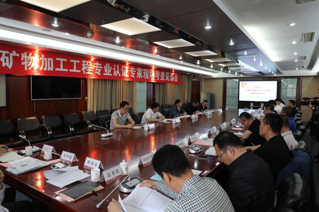 在国际会议中心召开矿物加工工程专业认证专家现场考查见面会。专家组组长东北大学魏德洲教授、安徽理工大学朱金波教授、中国矿业联合会陶明炬教授、武汉工程大学何东升教授、三峡大学周祥曼副教授参加会议。