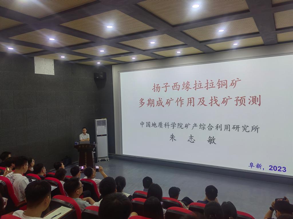 报告会上,翟德高教授从科学问题提出、成矿特征、成因认识和主要结论等四个方面分享其团队在中国东北部地区巨量银富集成矿方面研究的最新进展。朱志敏研究员则是以青铜器时期、工业革命时期和现代科技快速发展时期中的金属铜所扮演的重要角色为引线,深入浅出的作了一篇题名为“扬子西缘拉拉地区铜矿成矿模式及勘查意义”的学术报告。