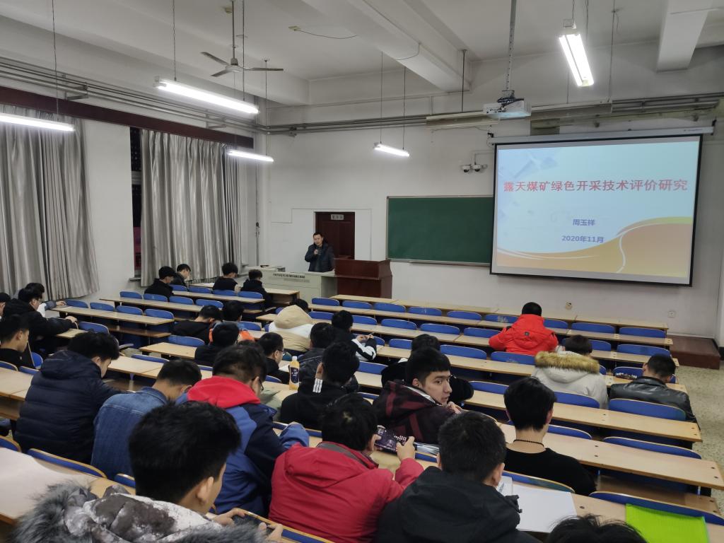 于博雅楼401开展大学生课外科研训练讲座活动--“煤矿智能化开采技术现状与发展趋势”及技能训练讲座,本次讲座由周玉祥老师担任主讲人,全院18、19级采矿工程专业同学积极参加。