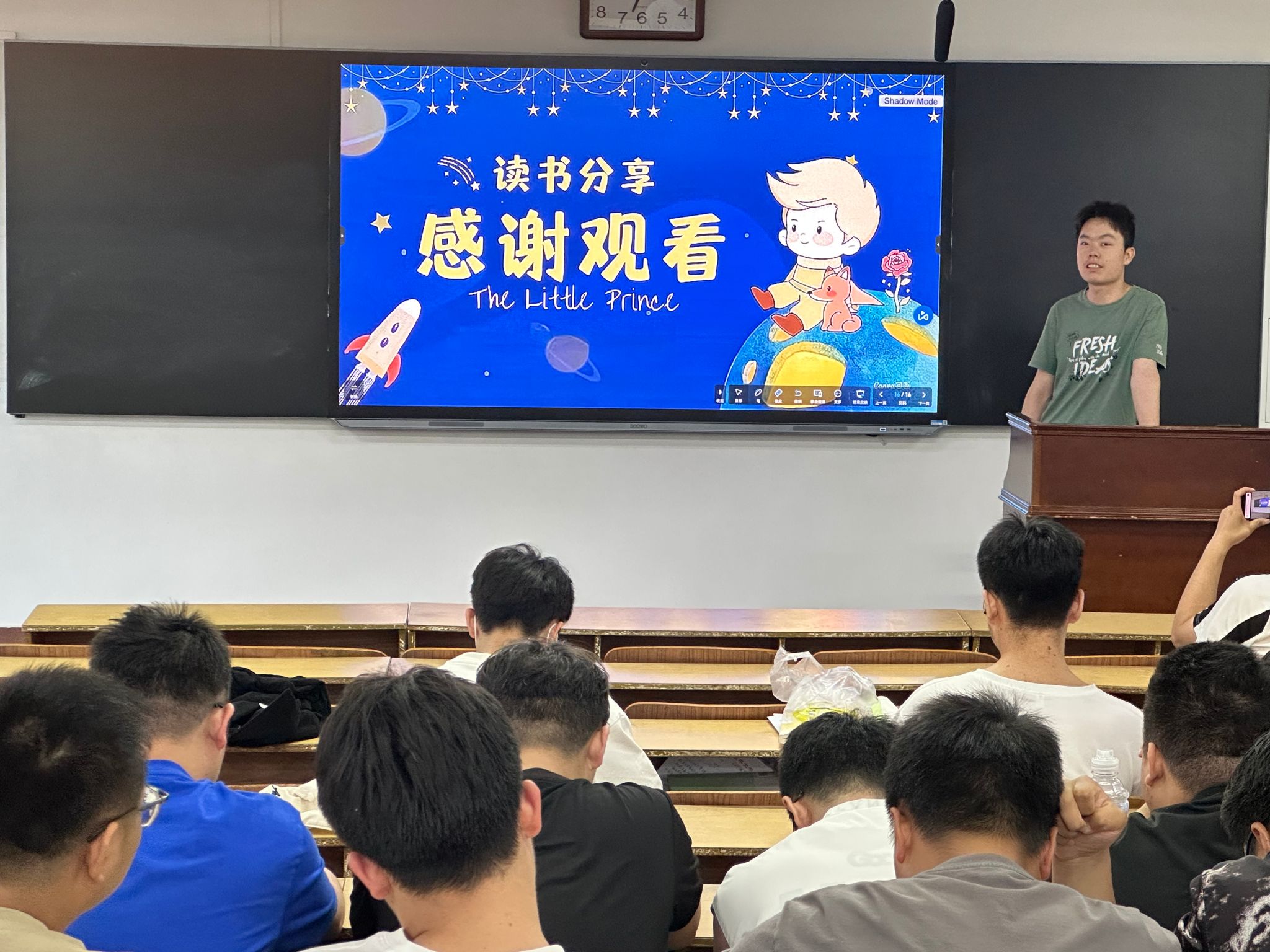 团委素拓部张震担任主讲人,他热情洋溢地分享了自己近期阅读的书籍和心得。从文学经典到专业著作,从哲学思考到人生感悟,他的分享内容丰富多彩,见解独到。张震用自己的语言,生动地诠释了书籍的魅力,让在场的听众感受到了阅读的乐趣。
