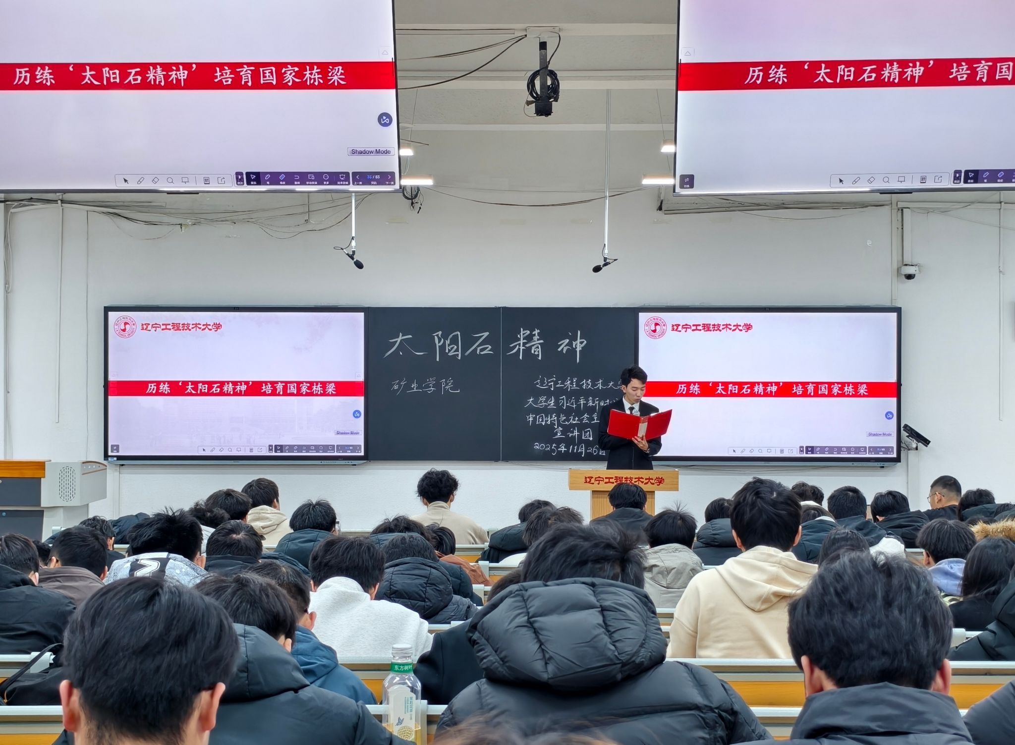 11月26日,校大学生习近平新时代中国特色社会主义思想宣讲团在新华楼304教室为2025级新生带来“弘扬太阳石精神”主题宣讲。大一新生们齐聚现场,在校训传承与专业特色的交融中感悟精神力量、明确成长方向。