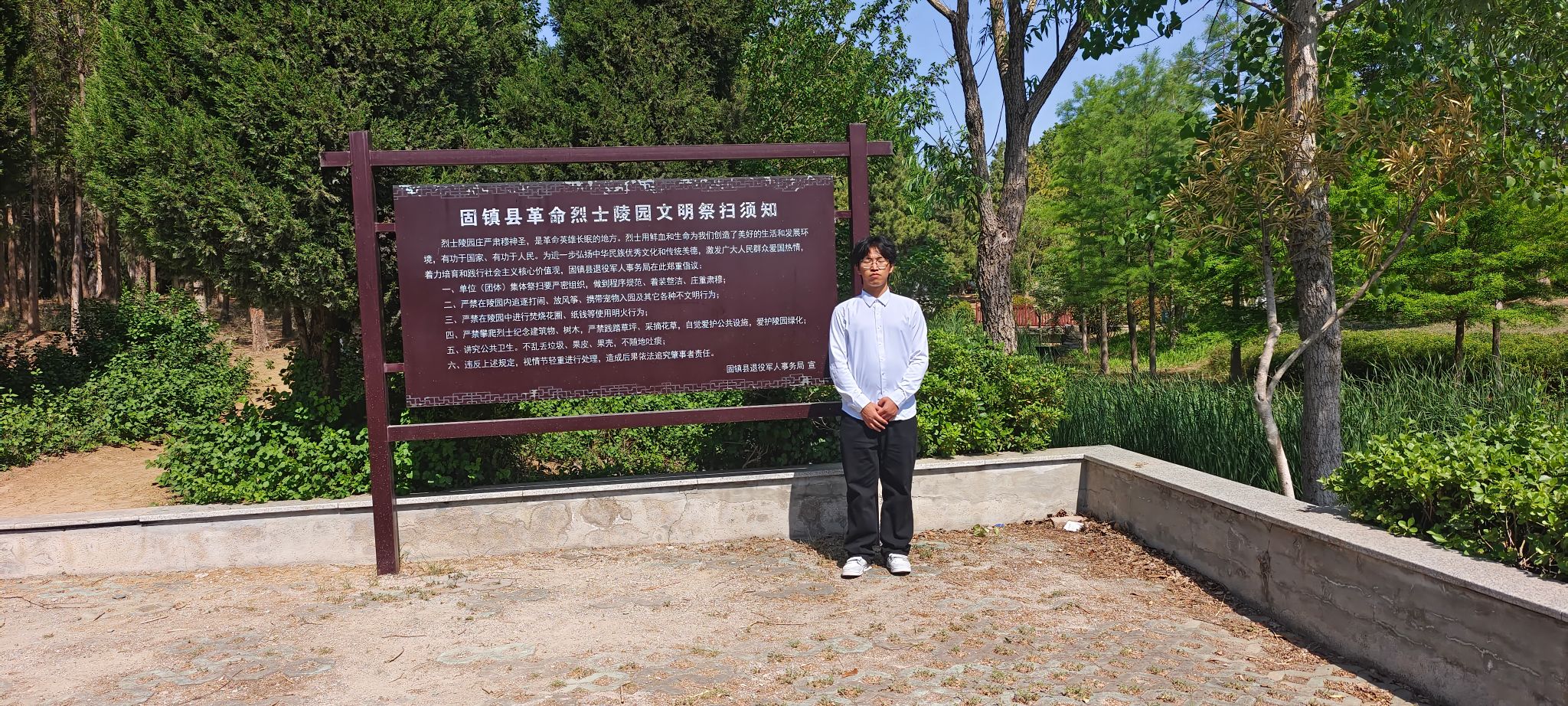 五一假期,我怀着无比崇敬的心情来到固镇县城西公园烈士墓。这里长眠着抗日战争、解放战争、抗美援朝及社会主义建设时期英勇牺牲的烈士们,既有张漫萍、周启邦等抗战英雄,也有170余位无名烈士。站在纪念碑前,凝望整齐肃穆的墓碑,历史的厚重感扑面而来——那些烽火连天的岁月里,先烈们以血肉之躯筑起钢铁长城,用信仰之光点亮民族希望。他们中许多人甚至未曾留下姓名,却以无私的牺牲为后人铺就了和平之路。