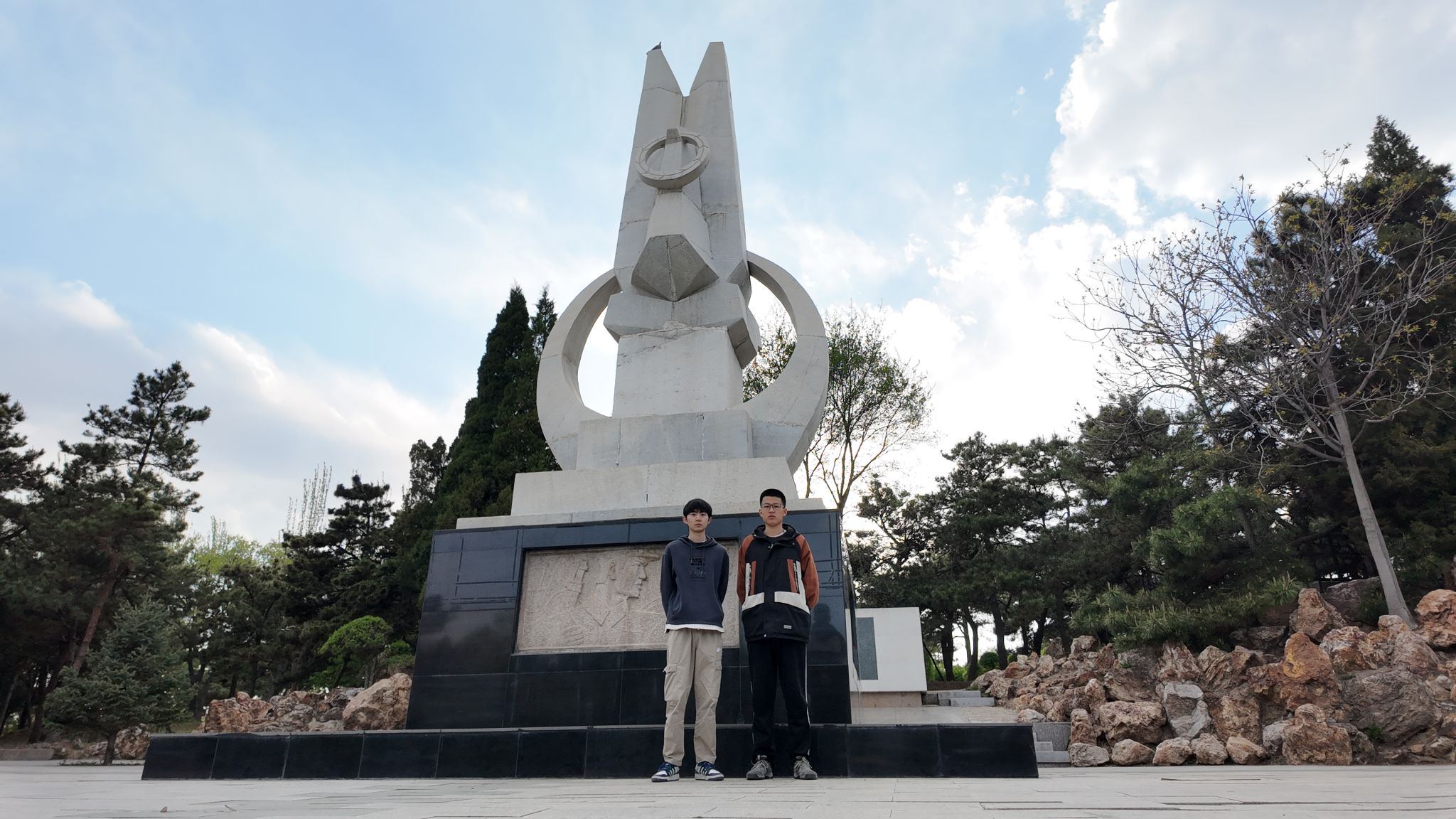 五一假期我们游览了阜新市318公园,公园里的烈士纪念碑矗立于苍松间,浮雕定格解放日的壮烈。三层阶梯与和平鸽象征“318”,碑文“英风浩气长存”提醒我们:安宁是鲜血浇灌的果实。
