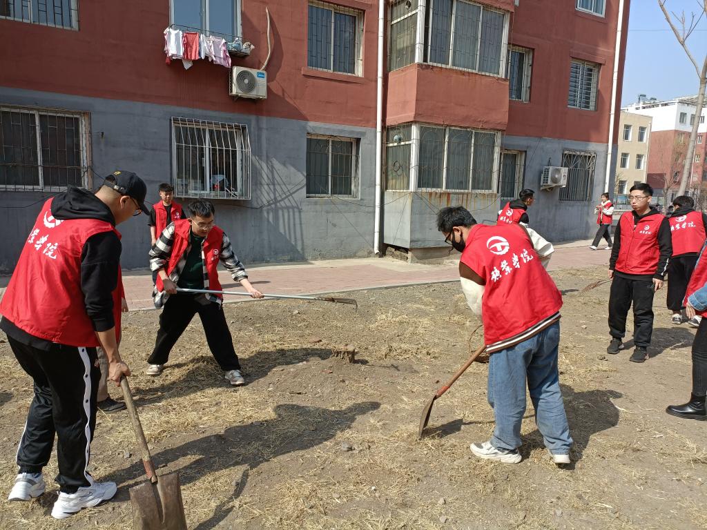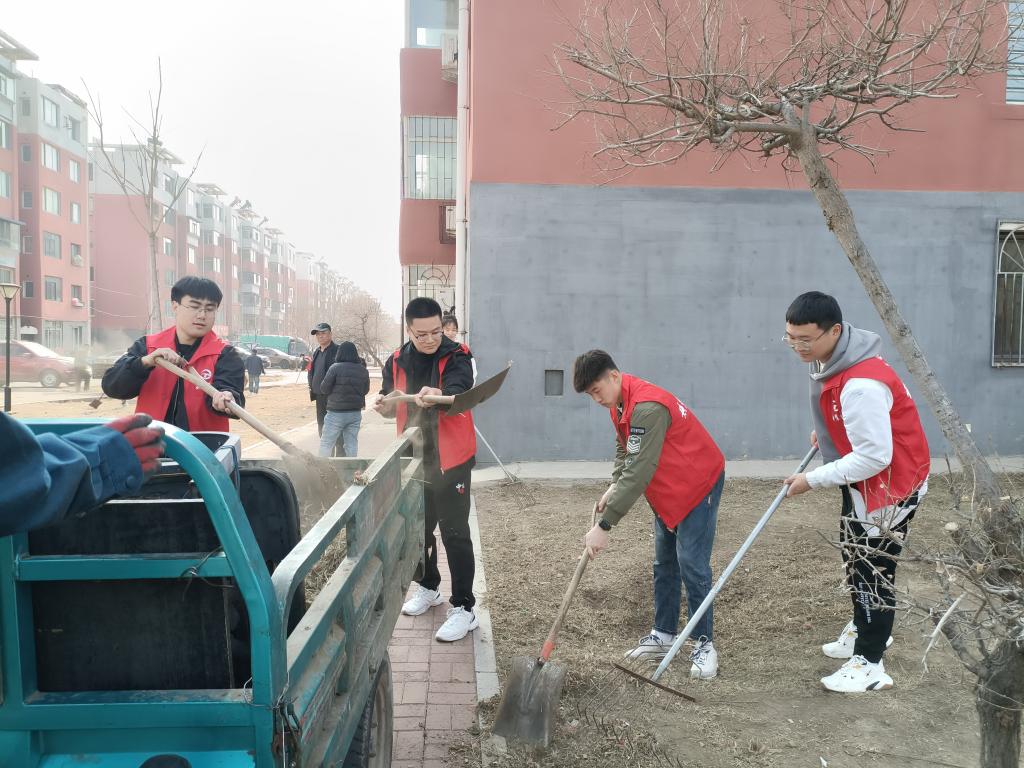 团委、学生会、研究生会、学生社团联合会二十余名学生骨干组成的志愿服务队到五龙街道文欣苑社区开展志愿服务工作。为协助创建干净整洁宜居的社区环境,学生志愿者将社区辖区内绿化隔离带、宣传栏、健身器材、其它公共实施及卫生死角进行彻底清理,更将文欣苑社区内几处草坪、花坛中的枯草进行了地毯式清理并及时整合装车,做到清扫无死角,清运有秩序,枯草无堆积,为助力阜新文明城市的创建工作及文欣苑社区环境治理贡献力量。