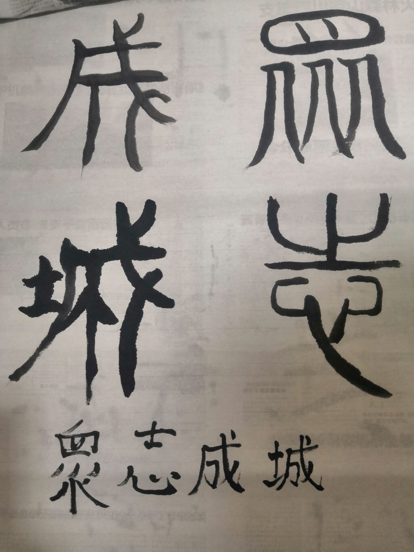 组织评审并已在“矿业微课堂”微信公众号展示优秀作品。学生社团国学社张展鹏同学的书法作品“众志成城”刚劲有力,代表着战疫必胜的信念;陈超同学书法作品“同舟共济,防控疫情”表达全国人民同心聚力打赢疫情防控阻击战的决心。资勘17-1班5名同学组成415团队,制作“武汉加油,明天会更好!”短视频,将团队成员创作抗疫主题作品的过程和为中国加油的照片融入其中。